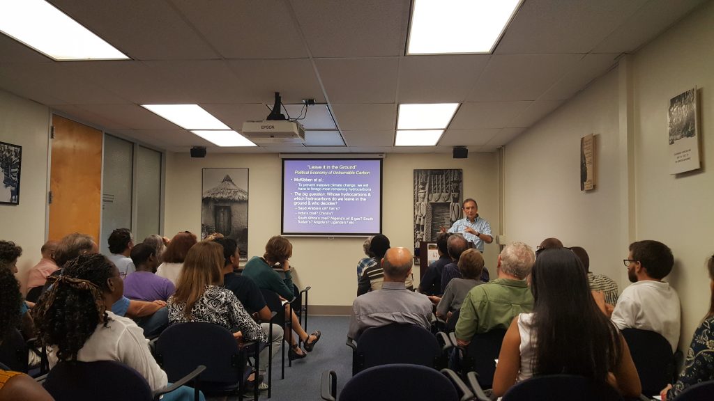 On Friday September 16th, Abe Goldman gave a Baraza presentation titled “Tropical Africa as Perpetrator & Victim of Global Climate Change: Africa and the Political Economy of Carbon.” Dr. Goldman is Associate Professor of Geography, and former Director of the Center for African Studies, at UF. The talk focused on Tropical Africa (i.e., sub-Saharan Africa with the exception of South Africa) as the world’s “low carbon champions” in both aggregate and per capita terms, and the implications of this status for the welfare and ability to cope with climate change of Africa’s people and societies.